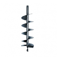 Режущий элемент бура — шнек для мотобура, диаметром 150 миллиметров. Изготовлен из нержавеющей стали, защищенной от влияния коррозии. Бур уверенно проникает в грунт и облегчает выброс земли.