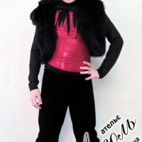 червоно-чорних кольорах та чорний хутряний жилет. Чорна перука з червоними ріжками виграшно довершує образ Чортика.