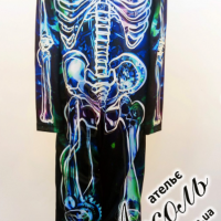 Костюм Скелет для хлопчика - чорний комбінезон з оздобленням неоновими малюнками хребта та кісток, що світяться у темряві та створюють яскравий образ маленького Скелетика для Хеллоуїна.