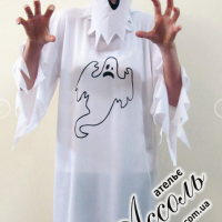 якого нерівні та імітують рвані закінчення. Малюнок веселого Привида Каспера на балахоні та маска довершують образ.