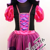 Костюм Відьмочка для дівчинки - чорна сукня з рожево-фіолетовим декором для святкування Хелловіна. Чорний ліф з яскравою спідницею з нерівним низом та чорний капелюх - чудовий наряд для маленької Відьми.