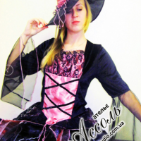 чудова стилізація образу Відьми. Рожеві оздоблення сукні та капелюха посилюють чари, які насилає Відьма чи Чаклунка.