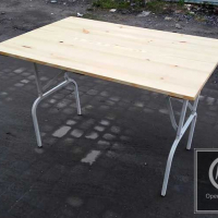 Стіл - прямокутний, розкладний, поверхня - дерев’яна, гладка. Добре вписується в будь-який інтер’єр. Придатний для використання в будівлі і надворі. Міцно і стійко може встановлюватися на трав’яному покритті.