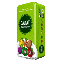 Салат – це швидка і захоплююча карткова гра для всієї родини. У ній є понад 100 способів набрати переможні очки. Гравці можуть використовувати різні стратегії, і кожна нова партія буде неповторною!Карти бувають шести різних типів, а на зворотному боці кожної карти є свій метод підрахунку очок. Так, наприклад, один метод підрахунку очок може дати 2 бали за кожну морквину, але відняти бал за кожен томат. Створюючи комбінації овочів і карток умов, які підходять для вашої стратегії, ви будете прагнути накопичити якомога більше переможних очок і стати переможцем.