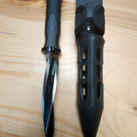 United Cutlery M48 Cyclone Tri-Edged Spiraling кинджальний ніж має незвичайний тригранний спіральний меч довжиною 203 мм. Левіє виготовлено з нержавіючої сталі 2Cr13. Чорна рукоять із нейлону, посиленого скловолокном. У торці рукояті є склобій. У комплекті спеціальні піхви для ременя Vortec TPR.