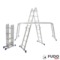 в конструкції сходів використовуються шарнірні з’єднання, що дає можливість трансформувати пристрій в двосторонню драбину, поміст або пряму сходи.