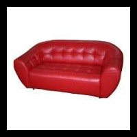 Зручний шкіряний диван, червоного кольору. На ньому можуть розташуватися дві-три людини. Диван буде як прикрасою так і приємним місцем відпочинку на Вашому заході.
