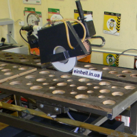 Плиткоріз – каменеріз з довжиною різу до 1650 мм. Двигун з механізмом занурювання, позичений в каменерізу італійської фірми TRIA-X, яка випускає професійні каменерізи. Столешня вирізана з транспортної вологостійкої фанери і додатково оброблена спеціальним клеєм. Широка столешня, яка дозволяє працювати без додаткових розширювачів. Потужний насос подає воду з двох сторін на диск. Забезпечена система циркуляції води. Розрахований на чистий різ, з застосуванням дисків – 250, 300, 350 мм. Диск піднімається, опускається і фіксується по висоті. Широкі фланці (шайби) запобігають вигинанню тонких дисків. Направляючі (рейси) з нержавіючої сталі з кріпленням в 7-ми місцях з можливістю регулювання для забезпечення точної геометрії різу. Ролики і посадочне місце роликів (вісь) регулюються для попередження підклинювання. Дифференційний захист, захист від перегріву, забеспечкють безпечну роботу. Міцна і проста конструкція захисного кожуху, захищає при роботі і дає повний доступ до диску при заміні. Має складні ножки. Проект розроблений особисто, з врахуванням досвіду по експлуатації плиткорізів. Розрахунок і виконання зварювально-монтажних робіт, виконувалось майстром з заводу Патона.