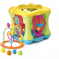 Багатофункціональна іграшка надовго втягне у гру малюка. Усередині коробки - різнокольорові спіральки на підставці, по яких легко переміщати веселі намистини -личка і квіточки. Ці спіральки можна встановити на кришку куба - так дитині буде зручніше гратися. Кожна сторона коробки виконує різні розвиваючі функції: