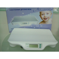Ваги медичні для немовлят «Малятко» виготовлені з гіпоалергенного пластику, мають функцію "тара", що дозволяє зважувати дитинку на пеленочці або у одязі без впливу на результат. Широке та зручне ложе й масивність конструкції забезпечують зручне використання. Ці ваги непросто "змахнути" зі стола. Ваги сконструйовані таким чином, що їх можна використовувати як пеленальный столик. Стійка плоска конструкція максимально безпечна у використанні. Додаткова функція пам'яті дозволяє запам'ятовувати результат останнього виміру. Особливість дитячих ваг - низьке розташування ложа спеціально для підвищеної безпеки. Висота ваг усього 5 см.