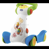 з 9 місяців Іграшка допоможе дитині стати на ніжки та зробити перші впевнені кроки. Достатньо спертися, почати крокувати і відразу іграшка починає грати веселий твіст, який припиняється, як тільки дитина зупиняється, і це спонукає малюка крокувати далі. Крім того – це ще й ігровий центр, який стимулює фантазію дитини та допомагає їй удосконалювати рухи за допомогою забавних ігор, вогників та веселих звуків.
