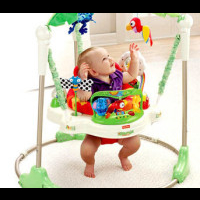 Можна весело грати і стрибати (стрибки активують вогні та звуки тропічного лісу) з усіма іграшками навколо та над головою, при цьому сидіння обертається, що дозволяє малюкові дослідити всі іграшки. Міцна конструкція, що вільно стоїть, дозволяє малюкові стрибати вільно і безпечно. Інтерактивна іграшка нагороджує стрибки малюка вогнями, звуками та музикою. Малюк розкручує барабан, щоб активувати вогні та музику (мама може активувати їх на 5 хвилин безперервної гри). Малюк може ляскати по тропічній жабі, що висить, і тукану.