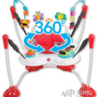 Контрастний яскравий стрибунець зі веселими узорами і ніжною текстурою буде активно стимулювати органи чуття малечі (слух, зір, смакові властивості, дотик). Всі іграшки були сконструйовані, теж, саме таким чином, щоб захопити і в той же час покращувати психомоторні навики. Крісло, що обертається на 360 градусів – ідеальна точка для огляду всього навколо. Буває, що дитинці на стільки припаде до душі якась іграшка, що вона не бажає розлучатися з нею. Розробники передбачили цей випадок, тому всі іграшки легко від’єднуються. Також приємним доповненням є те, що Вам не потрібно переживати за збереження ідеально чистого сидіння, адже з малюком це не реально. В даному випадку тканинна частина теж легко знімається і переться в машинці. А для зовсім маленьких передбачені додаткова підтримка! Стрибунець має 3 позиції, а його ніжки легко від’єднуються для легкого зберігання та подорожей. Іграшки продумані до тонких деталей: колесо огляду (слух і зір) – кульки всередині привернуть увагу малечі, саме колесо, що крутиться, торкається причинно-наслідкових понять; метелик для зубок (смак і дотик) – цікавий через різновид пластику – від м’якого до твердого та охолоджуючий ефект, коли ріжуться зубки; жабка-брязкальце (зір і слух) – приверне увагу звуком, а симетричному обличчю жабки характерний заспокійливий ефект.