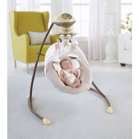 Заколисуючий цетр класу люкс. Багатий на м’які деталі, включаючи плюшевий підголовник, який охоплюватиме дитину розкішною м’якістю. До мобайлика, що дзеркально відображує маля, і знаходиться над кріслом-гойдалкою, прикріплено три м’які іграшки, які звисають. Сидіння має знімну підкладку для новонароджених на тему “чарівне цуценя”. Центр має 2 положення для лежання і 3 позиції для сидіння, що забезпечують батьків варіантами для того, щоб дитина почувалася комфортно в кріслі, залишалась спокійною, їй було цікаво і зручно заспокійливо колисатись з боку в бік. Музика включає в себе 16 мелодії: 8 заспокійливих і 8 розважальних, а також 2 різновиди звуків природи. Гойдалка має 6 різних швидкостей і регулятор гучності. Рама складається для зберігання. Адаптер змінного струму також входить в комплекті, щоб заощадити на батарейках.