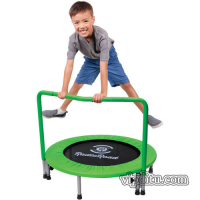 Ваше чадо полюбить цей міні-батут з першої хвилини. Він чудово підійде, як подарунок для маленької непосиди. Просто таки ідеально впишеться в будь-який інтер’єр: навіть якщо у Вас маленька квартирка, завдяки невеликим розмірам, поміститься будь-де. Також міні-трамплін можна поставити на подвір’ї. Металевий каркас забезпечить надійність, а ручка – стабільність та підтримку під час найактивніших ігор Вашого чада. Може використовуватися дітьми починаючи від 6 років. Діаметр – 91,44 см.