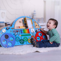Бізіборд Машинка – двостороння ігрова панель (дошка) для дітей від 7-8 місяців і до 3 років.