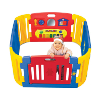 Дитяча ігрова зона – це метод сконцентрувати всі іграшки в одному місці. Також це місце, в якому малечі буде безпечно гратися. Такий майданчик для ігор легко складається зі стінок самостійно. Розкладається так само легко і займає небагато місця в розкладеному вигляді. Одна зі стінок також інтерактивна – має м’ячики-спінери, іграшковий телефон, кольорові клавіші піаніно, дзеркальце та кілька інших інтерактивних іграшок. Вхідні дверцята мають замочок. Має сертифікати ASTM (американська організація, що займається стандартами для матеріалів і продуктів) & CPSC (комісія США з безпеки споживчих продуктів).