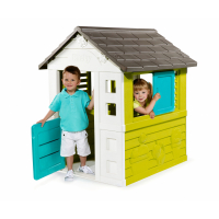 Всі ми в дитинстві будували собі будиночки з підручних предметів. І у наших діток, рано чи пізно, з’являється таке бажання. А тепер, завдяки бренду іграшок Smoby, Ви маєте можливість подарувати своєму малюку незабутні емоції і щасливі години, проведені у власному просторі. Ви можете не переживати як і з чого буде збудовано будиночок тому, що дана пластикова конструкція дуже надійна. Хатинка поєднує сучасні архітектурні тенденції і стане реалістичним театром або просто прихистком для рольових ігор діток. Як і будь-яка справжня будівля має два вікна і жалюзі на них двері та задній вихід. На стінах намалювано деякі тварини (кішки, метелики, тощо), щоб надати веселих ноток. Пластикові деталі захищені від негативного впливу ультрафіолету, забезпечені хорошою стійкістю кольору і довговічністю у користуванні. Таке гніздечко стане окрасою свята і забезпечить діткам прекрасне проведення часу і яскраві емоції.
