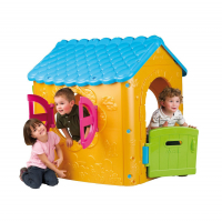 Красивий і яскравий кольоровий будинок стане прекрасним подарунком кожному малюку або навіть кільком. На будиночку є кошичок, щоб закидати кольорові кулі, які входять в комплект. Будиночок має віконця, двері та “запасний вихід”. Конструкція сформована з надійного і безпечного для здоров’я дитини пластика, є міцною і стійкою до температурних змін, бруду та подряпин. Насичені кольори не вицвітають навіть після 10 років використання. Конструкція легко складається і транспортується. Призначений для дітей у віці від 2-х років.
