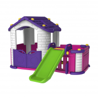 Дитячий ігровий комплекс “Будиночок з гіркою” 3 в 1 будиночок ідеально підходить для гри, як у приміщенні (дитяча кімната), так і в саду або на пляжі. Гірка кріпиться до будь-якій стороні будиночка. Дуже якісні матеріали забезпечать вашій дитині безпечну гру. Матеріал з яскравими квітами стійкий до атмосферних впливів і УФ-променів. Міцна дах будинку спокійно витримає повзаючих по ній дітей.