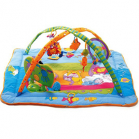 Тематика та дизайн килимка відповідають назві «Зоосад». Рибки, звірятка, комахи нанесені яскравим принтом на полотно килимка. Вони стимулюють малюка перевертатися більше лежати на животику. Вбудовані 3D-активні фрагменти (шуршалки, пищалки) розвивають дрібну моторику.