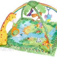 Ігровий килимок Джунглі Fisher Price захопить малюка музикою, звуками природи і світловими ефектами! У ньому багато підвісних і окремих іграшок, які дозволять Вашій дитині урізноманітнити свою гру. Відтворюється музика чи звуки тропічного лісу тривалістю до 20 хвилин. Ви можете вибрати одну з 4 мелодій! Механізм оснащений регулятором гучності. Іграшки можна переміщати по комплексу в залежності від того, у якому положенні в даний момент знаходиться дитина (на спинці або на черевці). Дитячий музичний килимок обов'язково сподобається Вашому малюку.