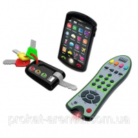 Три найбільш популярні дорослі предмети. Ми пропонуємо копію цих предметів, які люблять і хочуть діти. Вони дуже схожі . Смартфон має 18 значків на екрані, звукові ефекти, музику, є пошта, звук камери і місце симулювати виклик. Залиште телефон протягом декількох секунд, і він закликає вас назад. Легке миготіння з кожним звуком. Ключі: натискайте кнопки, щоб почути реалістичні звуки або кумедні фрази та дізнатися кольори. При натисканні кнопки автомобіль також випускає ключ. Також включає 3 ключі з різних кольорів і форм. Пульт дистанційного керування: 4 режими гри, веселі звукові ефекти зі шкірним натисканням на клавішу.