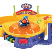 Гоночний трек Місячний кратер від Fisher-Price - це веселощі, гра, музика і розвиток спритності, уваги. Ця іграшка сподобається як маленьким, так і 2-3 літнім дітям. Діти люблять рух, швидкість, музику та вогні і тут все це є. 2 гоночних автомобіля будуть крутитися в краторі і який автомобіль більше зможе прокрутитися в краторі дізнайтеся самі. Диск, що обертається, направляє кожен автомобіль з до виходу. Дитина може потягнути важіль перемикання передач, щоб розпочати нову гру та нову швидкість. Переможцем щоразу буде інша машина.