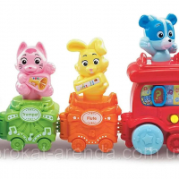 Розвиваюча іграшка від VTech яскрава, цікава і навчальна та розвиваюча. Ваша дитина з першого погляду полюбить цю іграшку. Веселий поїзд від VTech має 4 режими гри. Один із режимів – зробіть власну музику, переставивши вагончики поїзда та приєднавши їх до паровоза. Музичний , навчальний режим - натисніть на тварин, коли вони прикріплені до паровоза, щоб почути музику, або вивчити тварин, кольори, інструменти тощо. У режимі вікторини ваш малюк може відповісти на запитання. 2 способи гри: сидячи і потягти потяг за собою за допомогою вбудованого тягового шнура, який надійно зберігатиметься під поїздом.