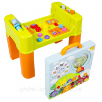В ігровому центрі безліч забав, які розважать малюка і допоможуть у розвитку дрібної моторики. Цей столик має кілька зон гри у верхній частині - навчання дитини (маленькі історії, питання, вогні, музика, звуки, захоплююча їзда поїзду, трактора), що делает процесс обучения более увлекательным и приятным для детей. Этот столик интересен тем, что несколько детей могут играть одновременно. С обратной стороны верхней игровой панели есть алфавит, который будет легко выучить. Во втором игровом поле ребенок найдет еще интереснее игры с различными формами, заданиями, инструментами. Малыш играя - учится и создает шедевры. Эта игрушка является большой, помогает детям расширить свое восприятие, развить мелкую моторику, координацию, ловкость, стимулирует их творческий потенциал. Реальні звукові ефекти будуть сприяти розвитку слухового сприйняття дитиною навколишнього світу. Гра сприяє розумовому розвитку дитини.