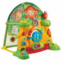 Забавні іграшки, різнофактурні елементи — все спрямовано на розвиток дрібної моторики. Можна грати в хованки, можна дзвонити в двері, натискати кнопочки, можна закидати кульки в спеціальне овтерстие! Також малюк може пограти в сортер, що допомагає дитині навчитися розпізнавати форми і кольору. Кожна деталь здатна захопити увагу малюка!