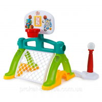 Спортивний Інтерактивний Центр Спортивна зона - 5-в-1 призначена для захоплюючої спортивної гри, в яку дитина може грати сам або з друзями. 5 видів спорту в 1 наборі і все супроводжується вогнями, звуками та музикою. Гра захопить малюка і ваш малюк буде годинами насолоджуватися бейсбол, баскетбол, гольф, футбол і хокей! Digital табло підрахунок забиті м'ячі. Ця гра весела анімація на 360 градусів. Інтерактивний центр сприяє розвитку рухового навику і розвиток м'язів, вчить підрахунку голосів та координацію рук і очей.
