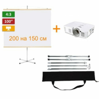 Приємний бонус при оренді проектора у компанії Domfort – разом із проектором ми надаємо абсолютно безкоштовно екран розміром 2 на 1,5 метра на тринозі. Тому у вас буде можливість не лише за допомогою чого проводити демонстрацію, а й на чому. На цьому бонуси від Domfort не закінчуються – разом із проектором та екраном ми також надаємо презентер (він же клікер), за допомогою якого можна комфортно керувати презентацією та відзначати важливі елементи лазерною указкою. Ну і, очевидно, кабелі для підключення до ноутбука також в комплекті (VGA або HDMI). На такому проекторі відсутня можливість відтворення з переносного накопичувача (USB флешки), але до ноутбука допоможемо підключити.