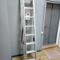 Аренда, прокат лестницы трехсекционная длинна от 2.3 до 5.1м, вес 10.6 кг. Стремянка исправная, устойчивая.
